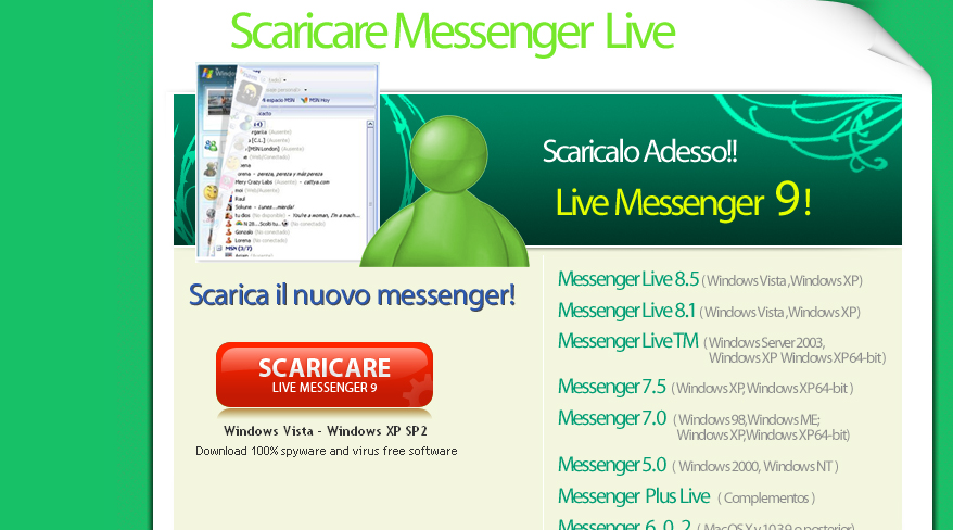 Purtroppo questo annuncio non porta al sito ufficiale di MSN Messenger, ma ad un sito con una layout molto simile a quella classica di Microsoft: