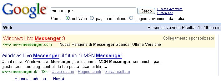Se cercate messenger su Google, state molto ma molto attenti all'annuncio che qui compare in premium position: