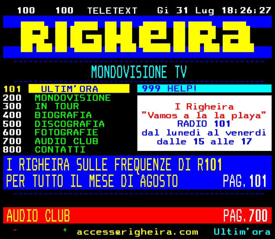 Leggi tuttoOggi volevo farvi una segnalazione off topic e condividere con voi delle impressioni sulla creatività del sito dei Righeira.