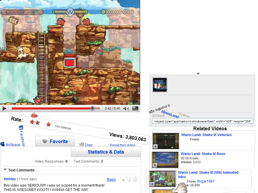 L'idea alla base è sorprendere l'utente: a prima vista da pagine del profilo sembra un semplice trailer di Wario Land. Ma secondo dopo secondo la schermata di YouTube si modifica sotto i colpi di Wario, concludendosi con una call-to-action al sito ufficiale di ExperienceWii.